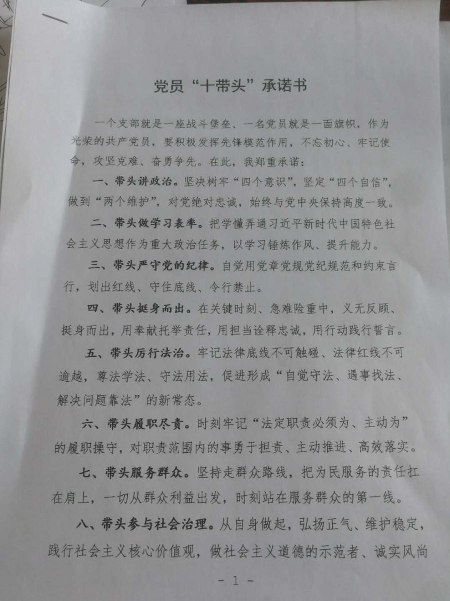 河北新萊曼黨員簽“十帶頭”承諾書,不忘初心牢記使命,認(rèn)真履行基層黨支部規(guī)定和職責(zé),努力貫徹黨的基本路線方針政策,基層支部黨員緊密和公司組織聯(lián)系起來、有效組織起來,形成具有統(tǒng)一意志、統(tǒng)一紀(jì)律、統(tǒng)一行動(dòng)的整體,形成一個(gè)有戰(zhàn)斗力有凝聚力的團(tuán)隊(duì)。