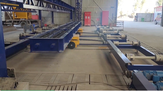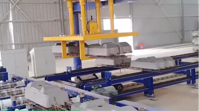 河北新大地為中鐵十七局雄忻高鐵提供全套雙塊式軌枕長(zhǎng)模生產(chǎn)線(xiàn)以及配套模具,包括上料布料振搗系統(tǒng)、模具輸送系統(tǒng)、蒸汽養(yǎng)護(hù)系統(tǒng)、出入窯設(shè)備、翻轉(zhuǎn)脫模系統(tǒng)、成品輸送碼垛系統(tǒng)、傾翻系統(tǒng)以及模具橫移系統(tǒng),生產(chǎn)線(xiàn)效率高,故障率低,產(chǎn)能穩(wěn)定。